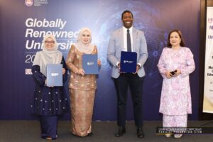 Norazida (dua kiri) dan Johnson (dua kanan) pada majlis memeterai kerjasama strategik melalui pertukaran MoU antara MACEE dan UiTM. Source https://www.utusanborneo.com.my/2025/02/03/macee-dan-uitm-meterai-mou-memperkukuh-kerjasama-pendidikan